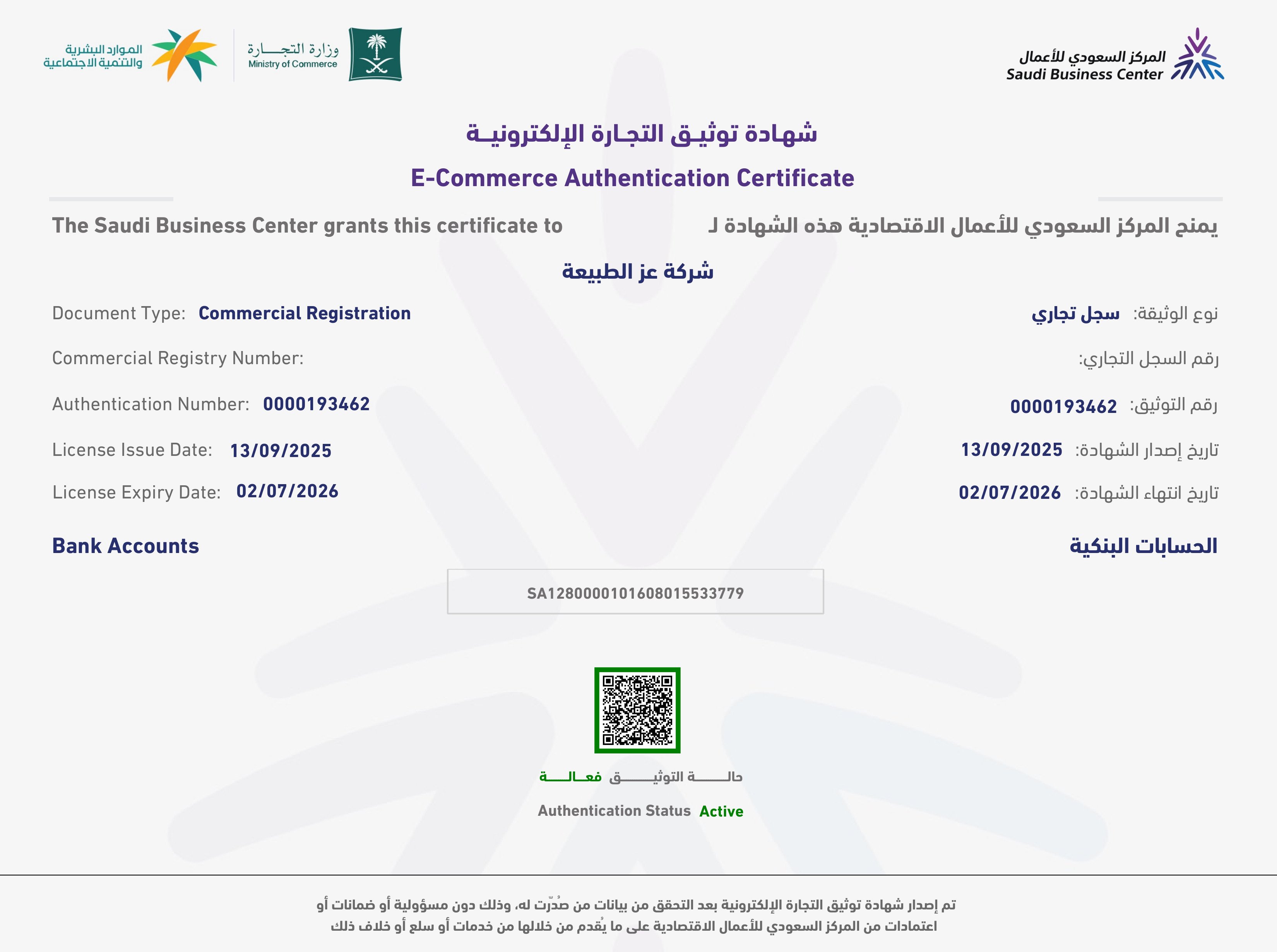 شهادة توثيق التجارة الالكترونية من المركز السعودي للأعمال :